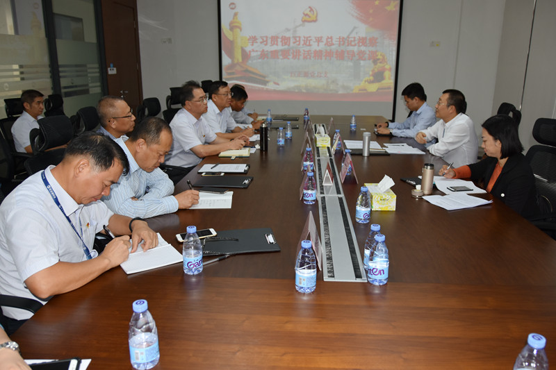 根據(jù)廣物控股集團黨委工作安排,11月16日上午,廣物控股集團黨委副書記陳樹武到巨正源公司督導學習宣傳貫徹習近平總書記視察廣東重要講話精神,并上專題輔導黨課。巨正源黨總支書記張寶業(yè)主持專題研討會,黨總支支委、班子成員參加了會議。