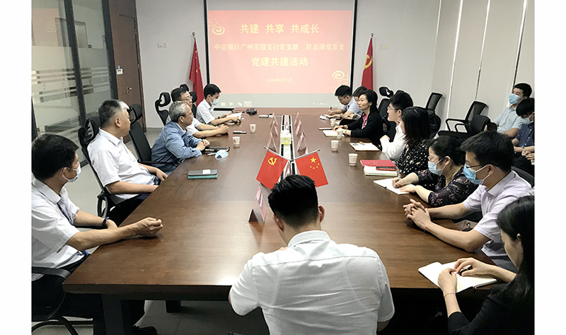 為推動“五強五化”示范黨組織創建,促進黨建與生產經營深度融合,6月5日,中信銀行廣州花園支行黨支部與巨正源公司黨總支聯合開展迎“七一”黨建共建活動。