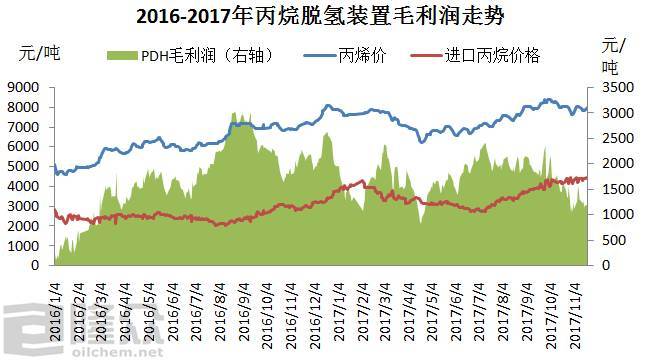 近年來,丙烷脫氫工藝在我國得以迅速發(fā)展,一方面是丙烯需求旺盛,供應(yīng)有缺口;另一方面裝置利潤優(yōu)勢明顯,是得以迅速發(fā)展的主因。雖然近幾年國際油價一路下滑并在低位震蕩,大宗商品行情并不樂觀,丙烯價格也有明顯回落,但作為原料氣的丙烷價格低位,這也保證了丙烷脫氫工藝的利潤保持良好,這也是華南地區(qū)也開始布局丙烷脫氫項目的重要原因。