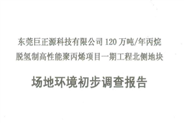 東莞巨正源科技有限公司120萬噸/年丙烷脫氫制高性能聚丙烯項目一期工程北側地塊場地環境初步調查報告
