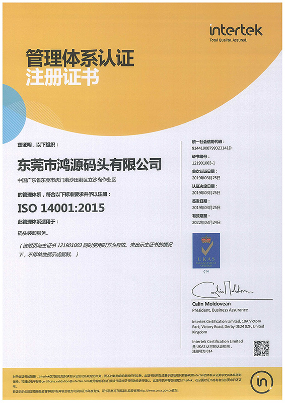 ISO-14001環境管理體系證書