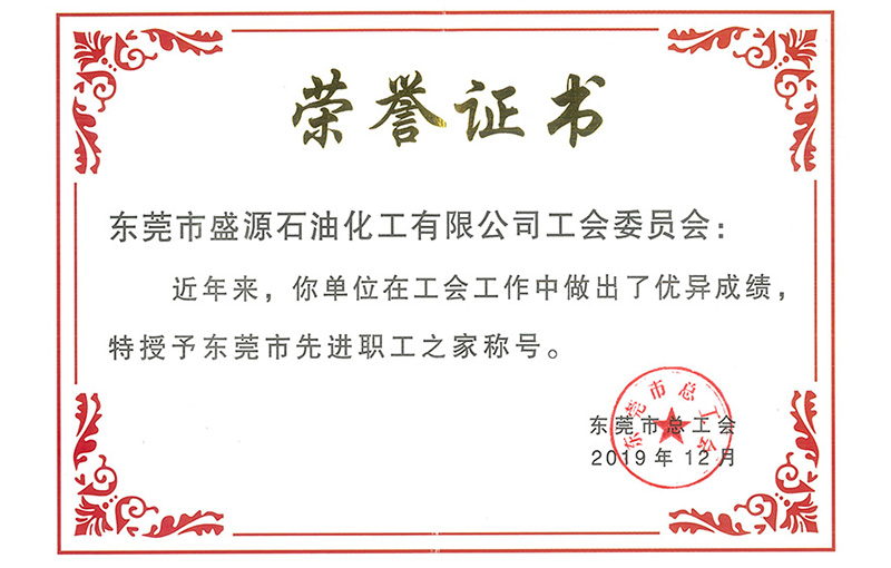 日前,在由東莞市總工會(huì)發(fā)起的“職工之家”的評(píng)比活動(dòng)中,盛源石化工會(huì)榮獲“東莞市先進(jìn)職工之家”稱號(hào)。